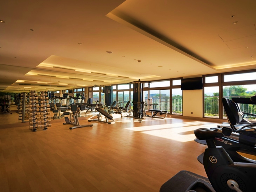 名人堂花園大飯店的健身房設施也不少,除了基本的跑步機、腳踏車,另外也有多功能訓練機、啞鈴等重訓器材,