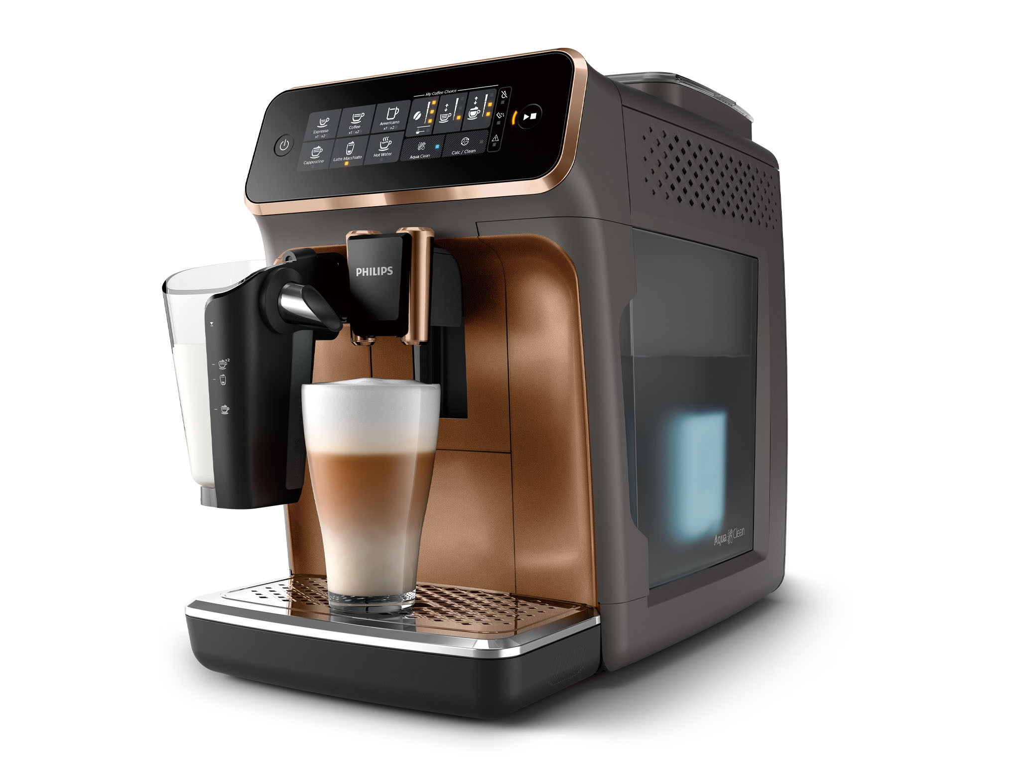 飛利浦LatteGo全自動義式咖啡機EP3246,採用100%陶瓷研磨器,低溫耐磨,不因金屬過熱產生焦味,保留新鮮咖啡豆乾淨風味。搭配創新LatteGo無管線奶泡系統,一鍵就有綿密雲朵奶泡,無管線的設計還能夠15秒快速沖洗,爸爸自己使用也不必擔心管線清潔問題