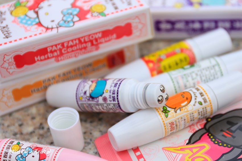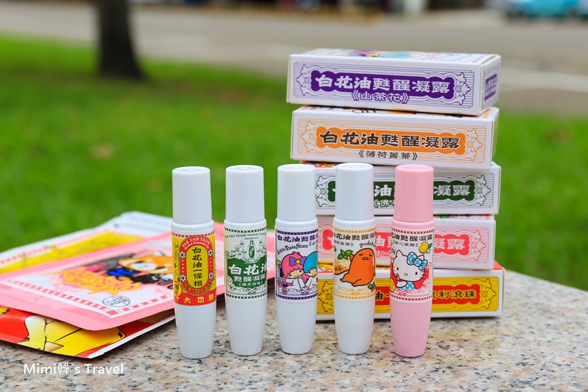 目前使用超方便滾珠瓶設計的就是上面這幾款,分別是薄荷菁蒂(蛋黃哥)、甜心萊姆(Kitty)、山茶花(KiKi LaLa)、佛手柑味(綠)以及白花油一條根,共有5種口味(疑?),是五種香氣才對,其中我個人比較愛薄荷菁蒂、山茶花。