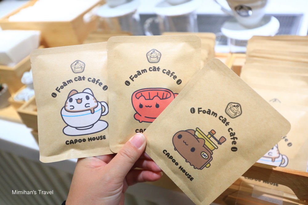 也推出了一些以奶泡貓為主的周邊商品,像是耳掛咖啡、咖啡豆、hario v60的咖啡濾杯⋯等。但其實我比較想買那隻奶泡貓公仔哈哈哈,感覺超級可愛療癒啊!擺在工作桌旁邊感覺心情會很好 😆