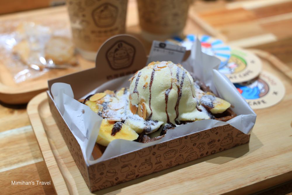 香蕉巧克力鬆餅(120元),底層的格子鬆餅超級硬脆,刀子切下去就像餅乾一樣會碎開,口感不會粉粉帶點焦香味,上面鋪滿香蕉切片、巧克力醬和一球冰淇淋,整體是還不錯吃的下午茶點心。