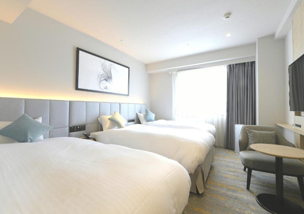 這間飯店最大的賣點就是「度假感」,雖然位於繁忙的車站旁,但頂樓竟然設有露天溫泉泳池,讓你在市中心就能享受泡湯看飛機的奢華體驗。房間設計非常大氣,幾乎都是落地窗設計,採光好到不行,且坪數起跳就比一般日本飯店大很多,這對於行李多、需要空間給小孩活動的家庭來說非常友善。住在這裡,你會有一種「我在度假」而不是「我在趕行程」的優越感,質感與細節都處理得非常好。
