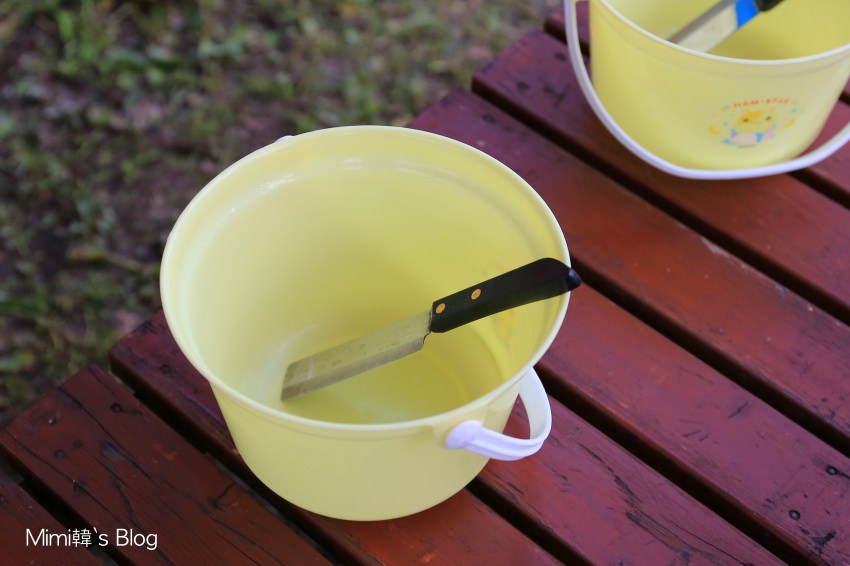 會給大家一人一組桶子和小刀,用來現場處理手中的蘋果