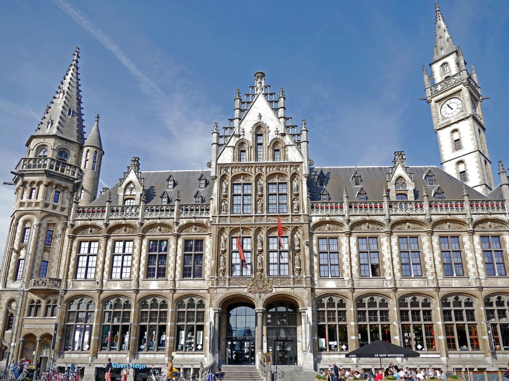 根特市政廳 Stadhuis 就在根特鐘樓旁邊,是許多風景攝影師來根特必拍的景點。這幢建築歷經三個世紀才完工,從外面繞一圈竟然可以看到哥德式、巴洛克式和文藝復興式等不同時期的建築風格,是說怎麼剛開始都不用畫設計圖的嗎?蓋到哪想到哪吼?也太隨興了吧哈哈。
