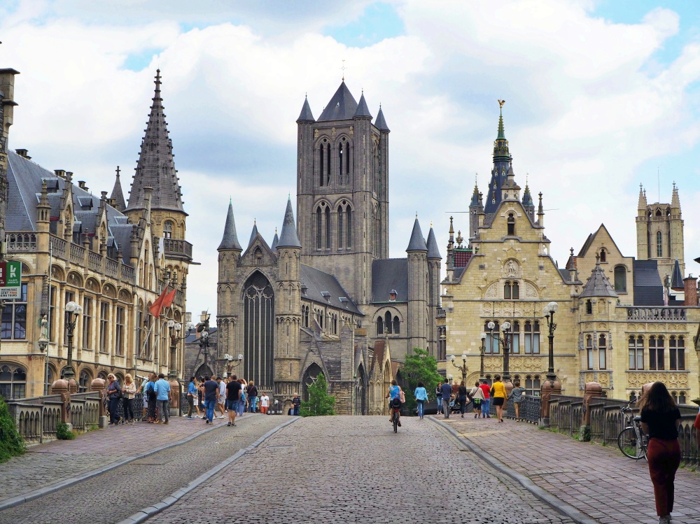 至於根特交通部分,布魯塞爾搭火車約35分鐘;布魯日過來約25分鐘。抵達根特後從火車站走到老城區約30分鐘,也可以搭電車約10分鐘,接著因為根特老城區不大,主要景點包含鐘樓、聖米歇爾橋兩側河岸、伯爵城堡等通通走路即可,且多走走看看我覺得比較愜意。