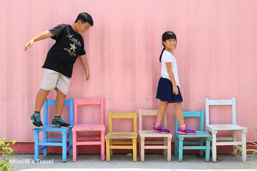 可能因為貨櫃從側邊、貨櫃門、貨櫃內部,很多角度都能取景,簡單拉張有顏色的椅子就能組成屬於自己的繽紛畫面,從親子、寵物、穿搭、放閃甚至婚紗照來這兒拍都沒問題。
