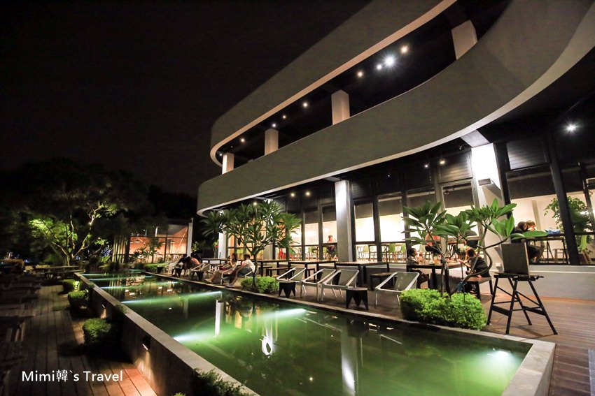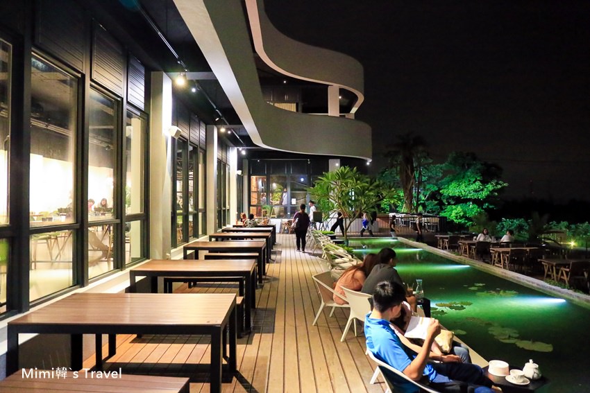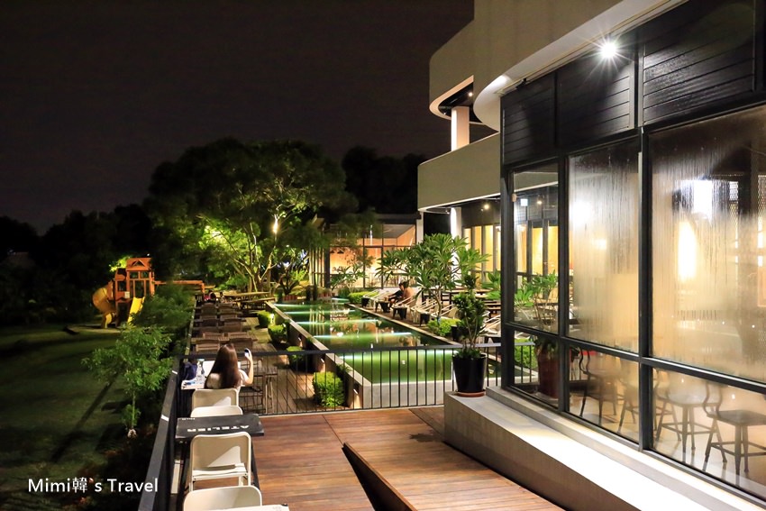 圍繞著水池邊,有四人用的餐桌,池畔也有躺椅&小矮桌,無論是家人朋友聚餐,或是情侶雙雙坐下來看夜景聊天,感覺都是那麼搭調舒服。