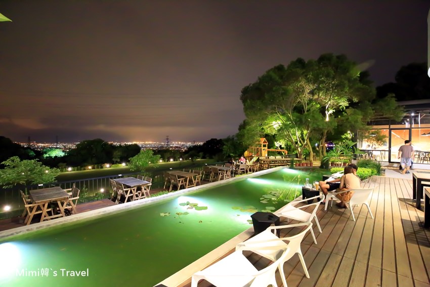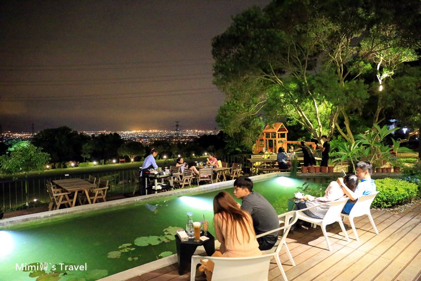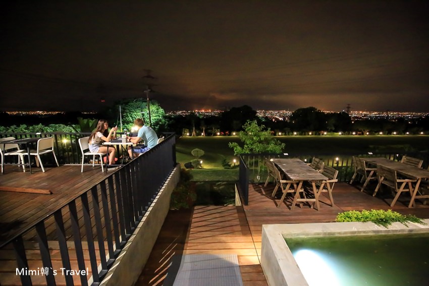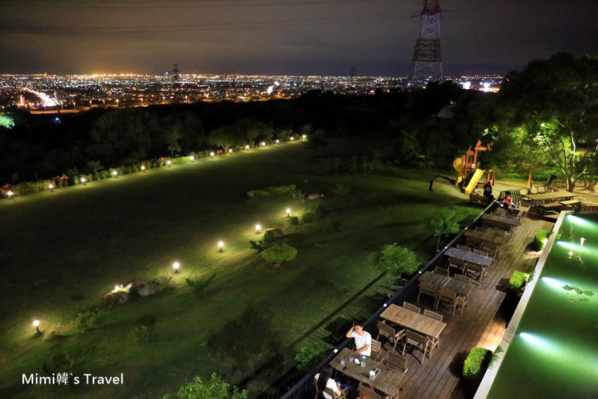 用餐區前方就是大片草皮,更過去則是台中清水沙鹿璀璨的燈光,我是覺得我們來的時間有點太晚,如果是下午大約5~7點左右過來,可以欣賞到黃昏光線與色溫的變化,想必更是好看吧 😆