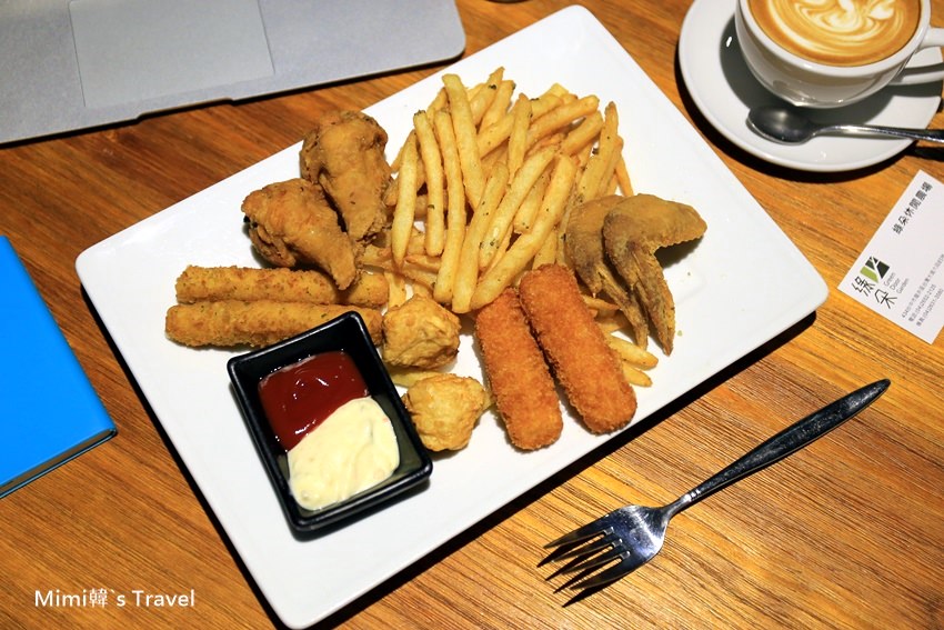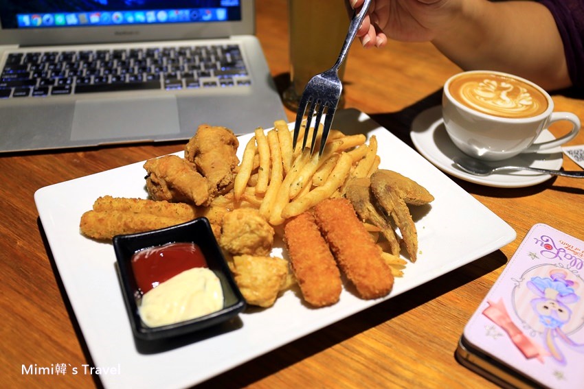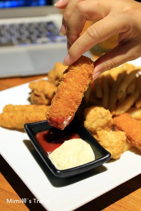 美式拼盤($270),有薯條、小雞腿、小雞翅、花枝丸、炸魚條、炸起司條等,應該都是冷凍食材來製作,也無所謂好不好吃,我想大家來這裡應該是醉翁之意不在酒,更多的就是享受那朋友聚餐,或是兩人約會看夜景的甜蜜氣氛吧 😆