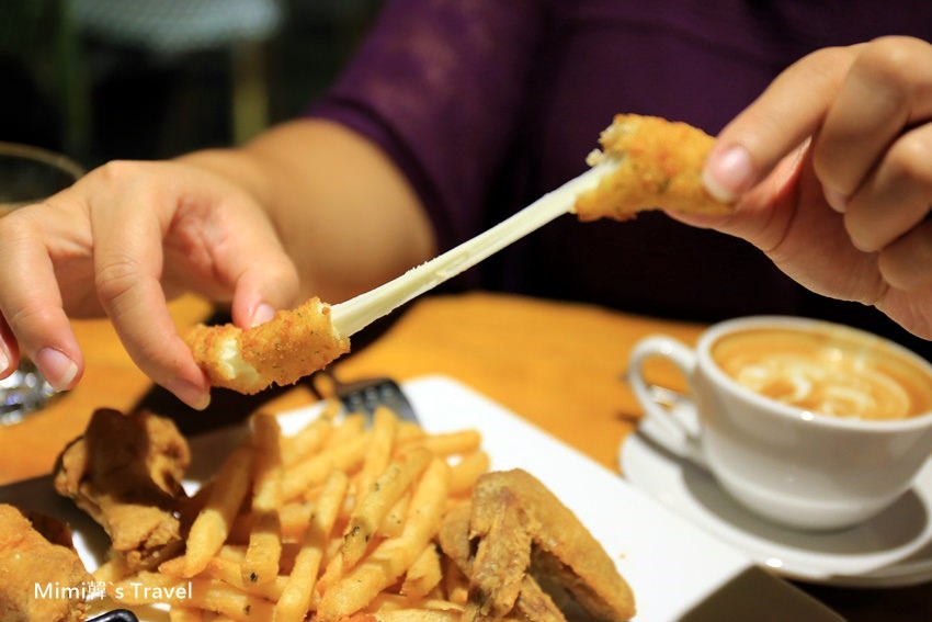 拿鐵($130)有拉花,味道還算順口。而老公點的蜜柚紅茶($120),他也是說滿好喝,搭配炸物一下子就被乾杯哩~