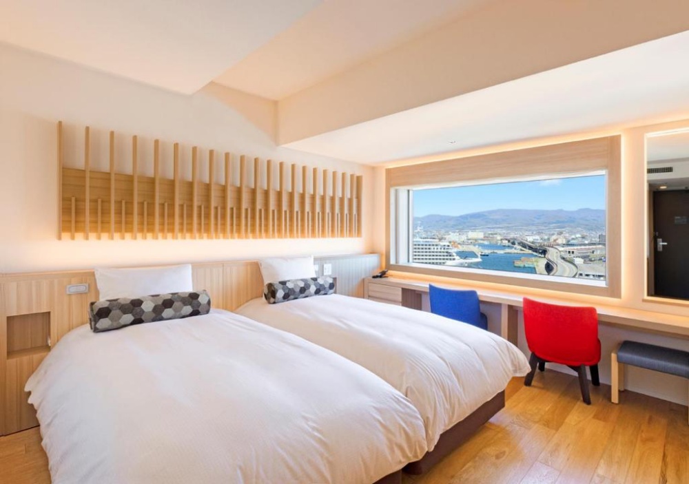 房間設計融合了溫暖的木質調與現代感,部分房型還有小流理台。早餐是與朝市的知名食堂合作,直接給你餐券去市場吃海鮮丼,讓你體驗最道地的函館早晨。