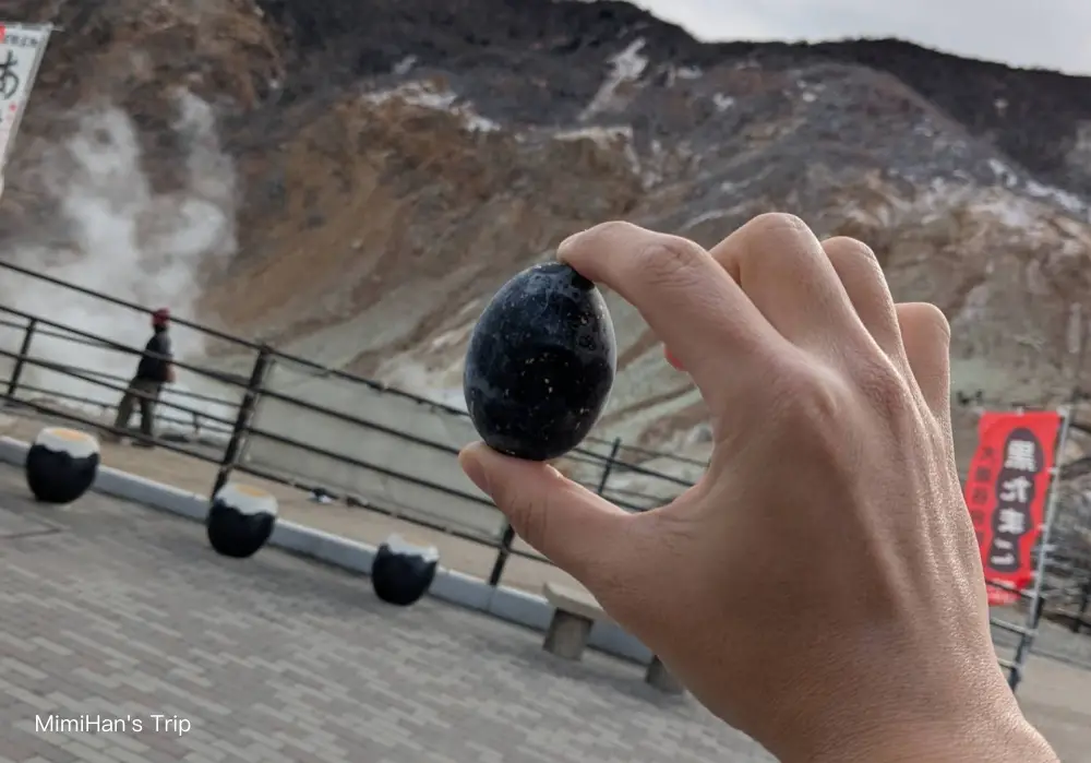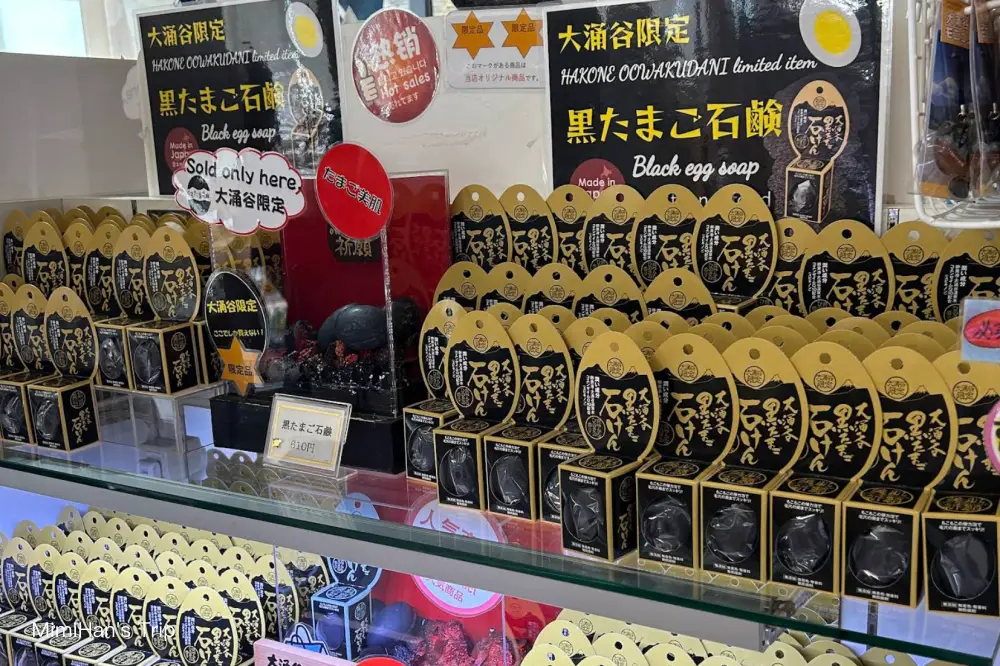 大湧谷是箱根最具代表性的火山地熱景觀,漫步其間,可以看到硫磺煙霧不斷冒出,空氣中帶著硫磺味。這裡最著名的名物是「黑蛋」,以地熱溫泉煮熟的雞蛋因反應而變黑,相傳吃一顆能延壽七年。