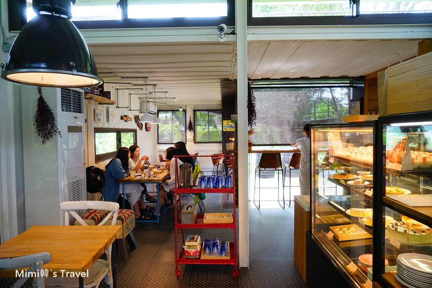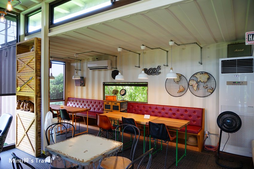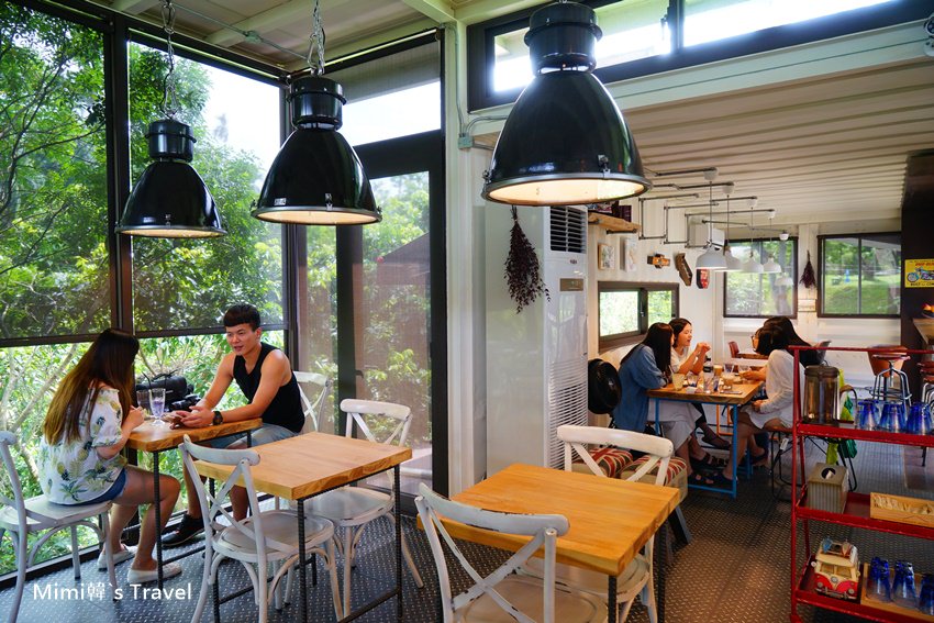 走進山丘咖啡廳,餐廳裡面空間不大,貨櫃屋的線條搭配各種擺設,帶著輕工業風的氣息,而玻璃外就是青翠的嘉義山林景色,所以窗邊的位置很搶手呢~