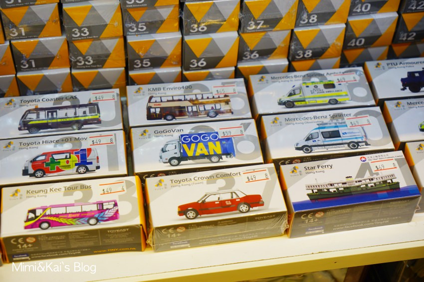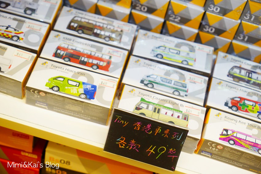 還有看到跟日本TOMICA小車車一樣的Tiny香港車系列,不只是警車、救護車、郵務車⋯⋯就連可能只存在一段時間的藝術巴士、動漫電車都被留下紀念玩具,和前面的日本鐵道專賣店一樣,只是這家我覺得更有香港在地特色,推薦給喜歡收集小車的朋友。