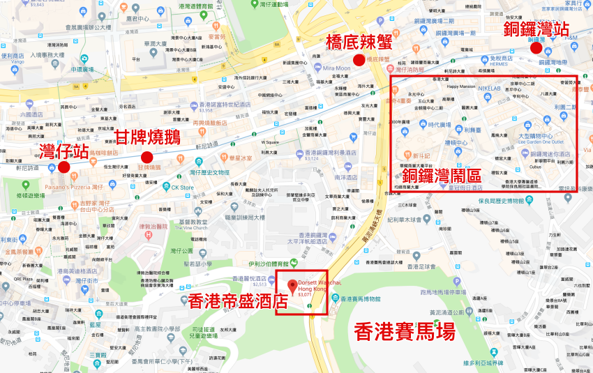 灣仔帝盛酒店(Dorsett Wanchai Hong Kong)位於香港賽馬場旁,離港鐵銅鑼灣站、灣仔站走路都約10~15分鐘。