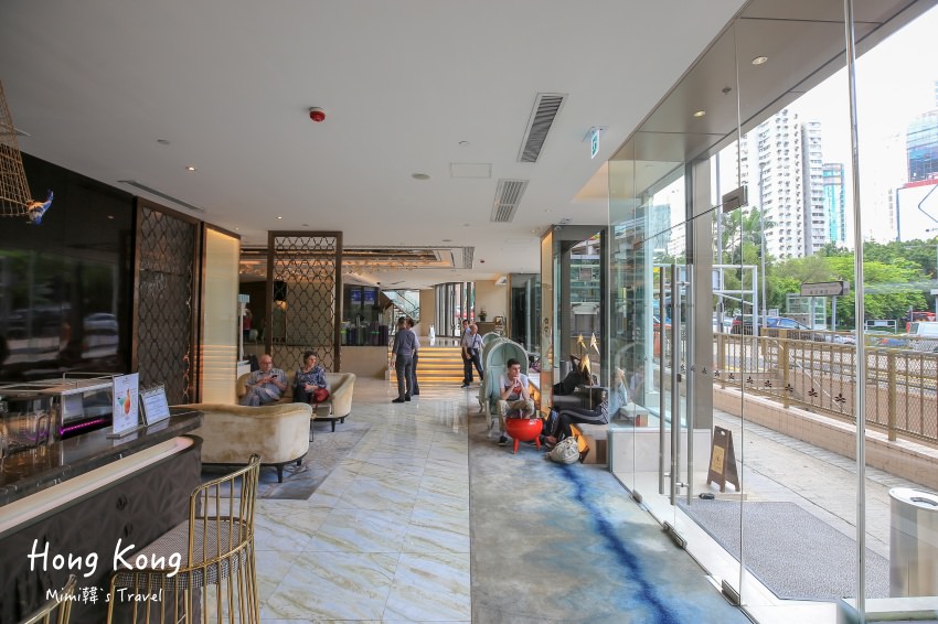 香港灣仔帝盛酒店大廳蠻有現代感,服務人員的態度也很好,還會主動幫我提行李上階梯,很快的幫我辦好入住手續,也簡單介紹接駁車的服務。