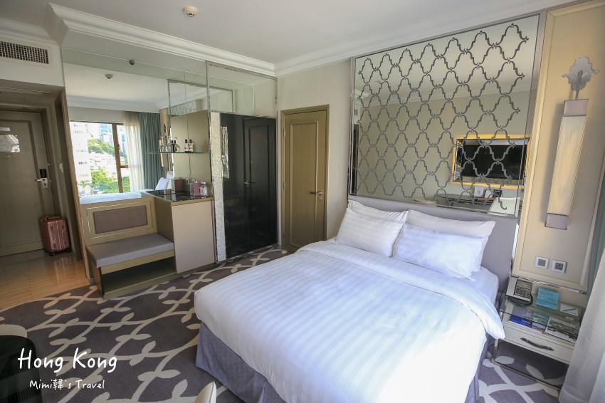 打開房間很驚喜捏!因為以香港飯店來說,我覺得香港灣仔帝盛酒店的房間算很寬敞,光這點就給我很棒的印象,且裝潢質感典雅。