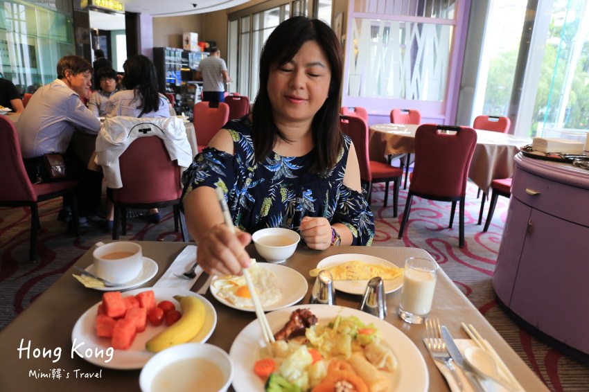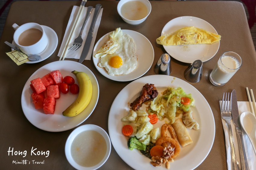 早餐是在灣仔帝盛酒店二樓的浦公館中餐廳,有看到中式熱食、港式點心、粥品、麵包、沙拉、水果⋯等,我是覺得種類不算多,但口味還不錯,也有現場料理的歐姆蛋等熱食。我們是因為一大早要去香港海洋公園所以才訂餐,不然其實附近能找到的香港美食也不少,完全不用擔心餓肚子啦 😆