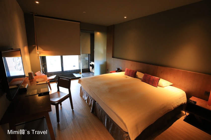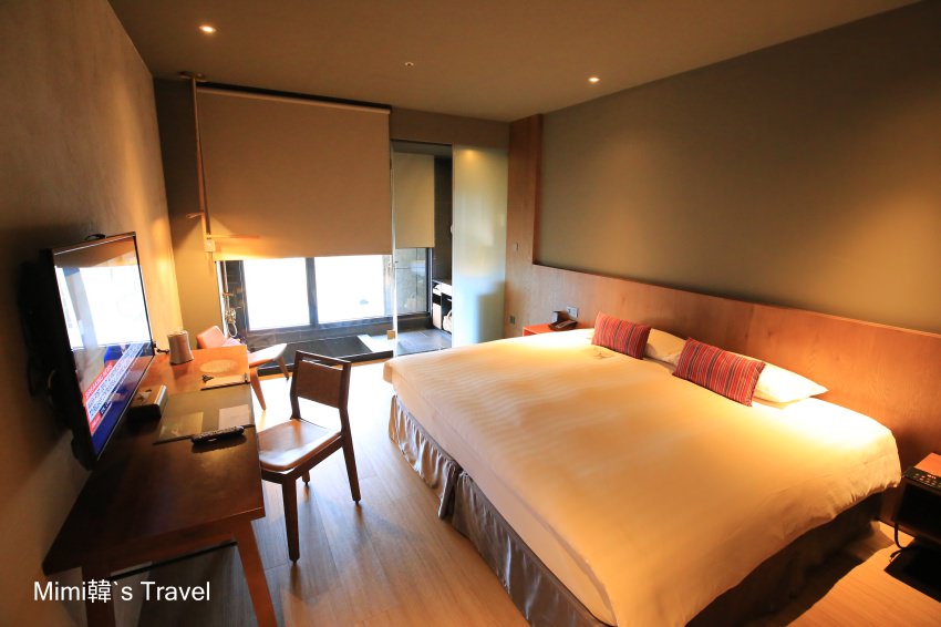 我們這天的房間在10樓,推開房間就讓我驚豔,空間應該有10~11坪,中間放著King size的床墊(聽說是MIT的泰德床墊),整體採用大地元素的色彩,延續著台灣原住民風格的設計,氣氛很舒服。