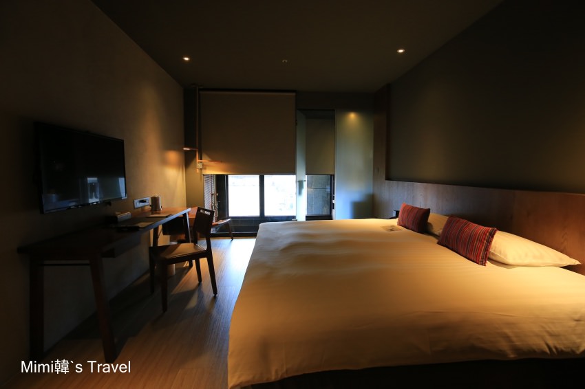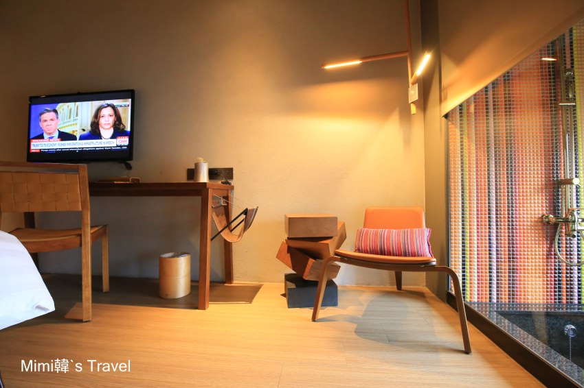 不過整體光線算是比較昏暗(白天窗簾拉開倒是還好),可能就是希望營造出像在帳篷裡點著一盞燈火的那種味道,記得訂房的時候看到有人針對這點給了負評,給大家參考。我自己是覺得如果不是要在裡面看書的話,這樣的光線倒是滿讓人可以好好休息的 😆
