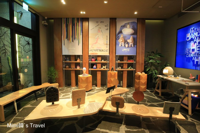 Home Hotel Da-An 的一樓是有對外營業的餐廳,從入口開始就能看到粗獷的地板設計,還有一些編織作品,整體裝潢就是以台灣原住民為意象的風格。