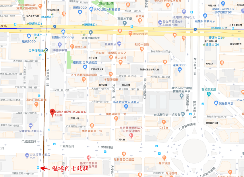 HOME HOTEL DA-AN 交通位置