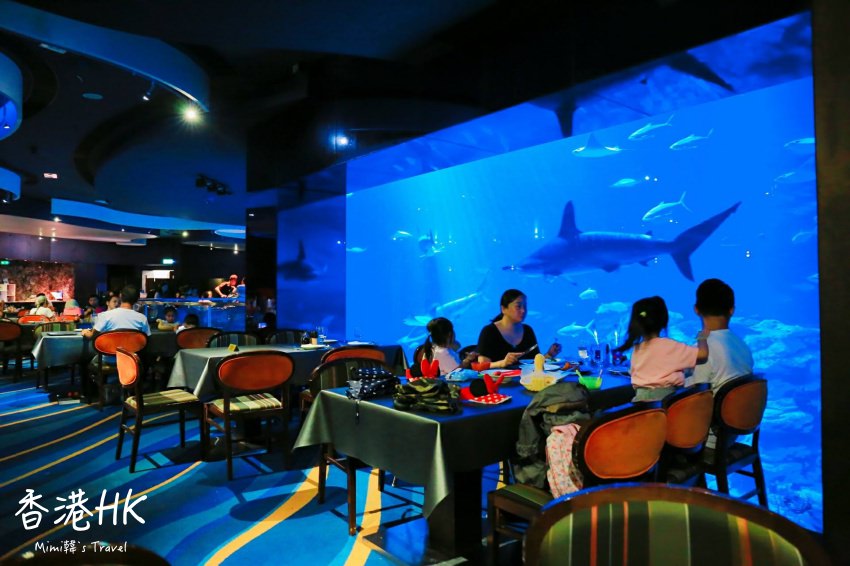 那美食呢?遊樂園裡當然也會有餐廳,其中最有特色的肯定就是海龍王餐廳啦!直接就坐在超大水槽旁用餐,時不時就會有鯊魚、魟魚游過去,絕對是難得的用餐體驗。