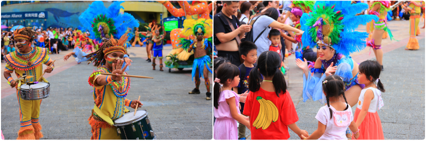 而歡樂的加勒比夏日巡遊(每日三場)、加勒比夏夜巡遊(每日一場)也是必看。以海洋生物、野生動物及雀鳥為主題所佈置的大型花車和服裝,再加上熱力四射的動感音樂,讓整個香港海洋樂園的氣氛達到最高點,記得提早到遊行的路徑上找好位置喲 😆