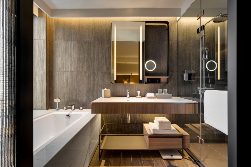 所有房型的浴廁都是乾濕分離,淋浴間、浴缸、廁所都各自獨立,有免治馬桶。沐浴備品是使用「伊日生活 YIRI LIVING」的沐浴乳和洗髮精蠻好聞。