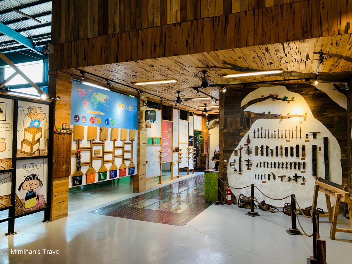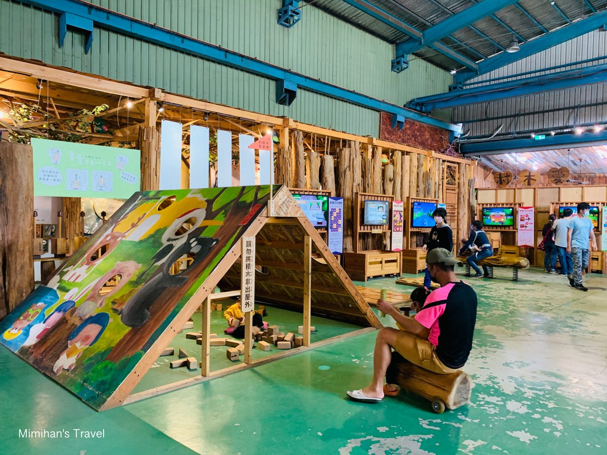 順著動線往裡面走,館內有好幾間小教室,可能是用來接待遊覽團等團體,而其中一處是規劃成小小孩的遊戲室,裡頭家家酒、溜滑梯、小積木一應俱全,大家在外面看台灣木業的歷史,放孩子在這裡玩也不用擔心。