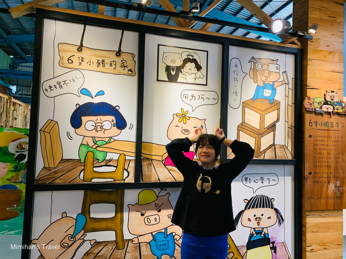 從入口處就能看到以六隻小豬和森林動物為主題的可愛造景,愛木村也很趕流行的做了拍照打卡的框框大家使用。