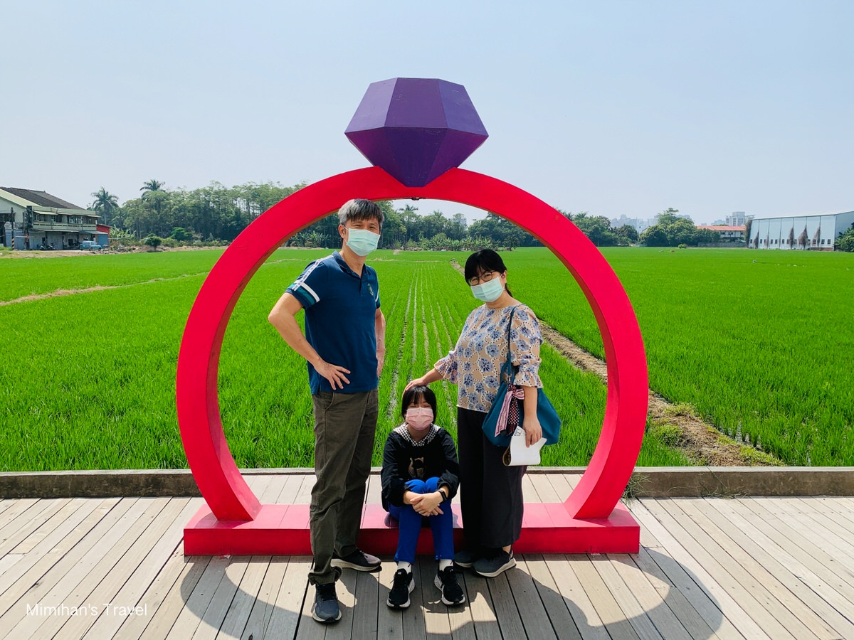 巨大的戒指,搭配後面新綠的稻田顏色也是很搶眼呢~