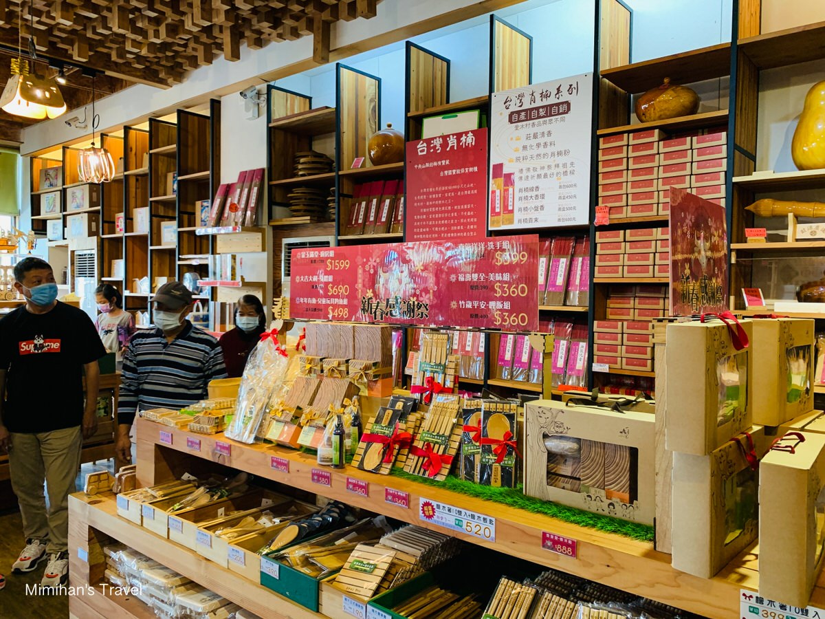 而愛木村休閒觀光工廠的商店區我覺得還蠻豐富的,很多用木頭製作的生活用品、玩具、拜拜用的香品,還能買到台灣檜木、肖楠木⋯製作的天然精油,價格比在百貨買便宜,大家也可以考慮入手。