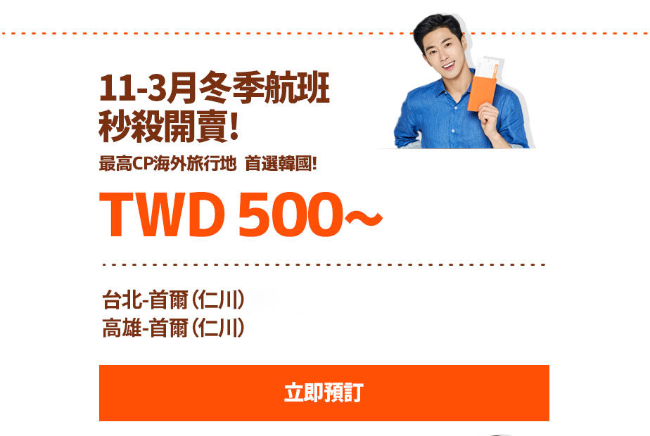 4.只能透過濟州航空官網、手機官網&APP訂票,免預定手續費