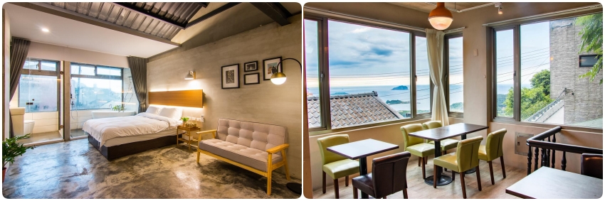 聽風的歌民宿是瑞芳九份新開幕不久的民宿,內外設備新穎、房間備品充足,乾淨舒適,而且大片玻璃窗外的山海景根本超忘憂,不出門待在房裡看風景也是享受。還會提供嚴選食材的早餐和下午茶,整體品質超棒的唷~
