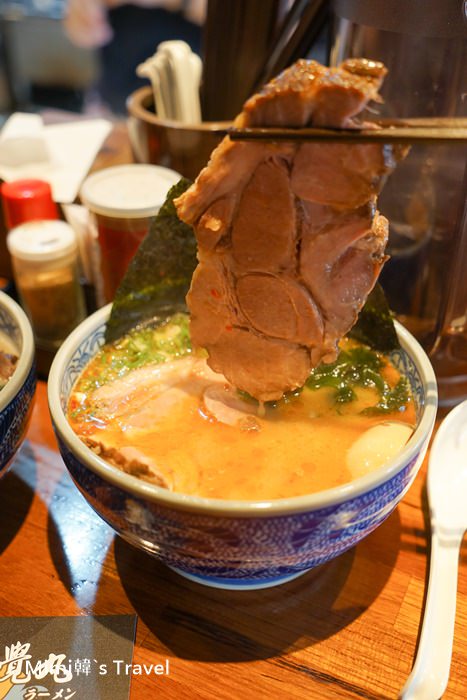 而叉燒真的是無敵大片,一片就幾乎佔滿整個碗,光它就讓整碗拉麵的CP值提高很多,Kai說他有點後悔點兩片裝份量,因為真的不知道這麼大,但因為實在不錯吃,他最後還是全嗑掉,只是說吃多了有點油膩,建議如果沒把握吃得完,還是建議點一片的就好。