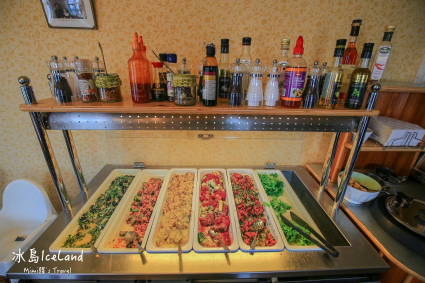 店裡一樓是咖啡廳,而二樓是最受客人歡迎的自助式Buffer吃到飽,口味上見仁見智,以冰島美食來說我覺得Kaffi Ilmur ehf 算是台灣人可以接受的味道,而另一個巨大的重點是:一個人吃到飽只要2,290ISK,這價位在冰島算是相當便宜啊!