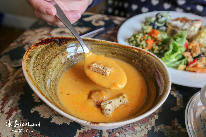 說真的這趟在冰島,我們安排的餐廳通常都選在晚餐,很多天的午餐都是在車上草草解決(一天排兩餐外食會破產 😆 ),中餐可以享受像這樣坐下來享受熱騰騰的食物和濃湯,好舒服!