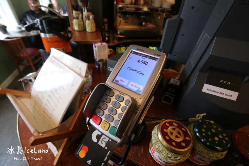 用完餐之後自己走下來櫃檯結帳,兩個人共花了4,580 ISK就能吃飽飽啦!很不賴的一家阿克雷里美食,把Kaffi Ilmur ehf 簡單分享,希望大家也會喜歡 😆