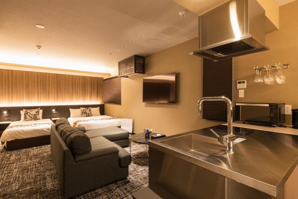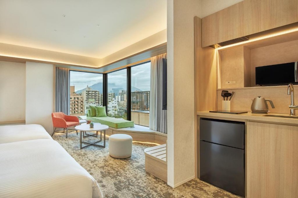 這是 FAV 系列的高端品牌「LUX」,2024 年才剛開幕的新星。法夫勒克斯鹿兒島天文館 (FAV LUX KAGOSHIMA TENMONKAN)它將公寓式酒店的規格拉到了奢華等級。房間極度寬敞,部分房型甚至配有「私人桑拿」和半露天浴池,讓你逛累了回房就能直接進烤箱桑拿一下,這種爽度真的難以形容。地點就在天文館商圈周邊,是一間打破你對「公寓酒店」想像的飯店。