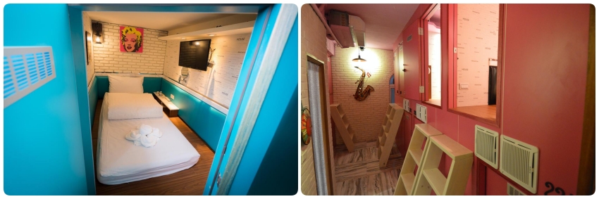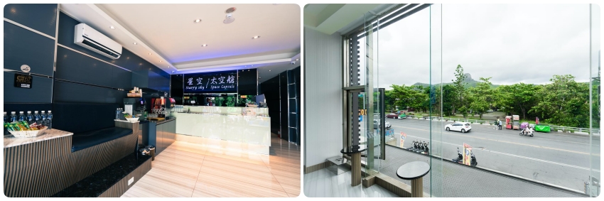 這間太空艙精品會館是位於墾丁大街的住宿旅店,吃喝買東西超方便,還有免費泡麵真是太幸福了!隔音效果不錯,膠囊旅館床舖空間大,一床一電視真的很棒,房間還多提供洗手台供簡易清洗及小冰箱,也有獨立的夜燈和插座設計很貼心。