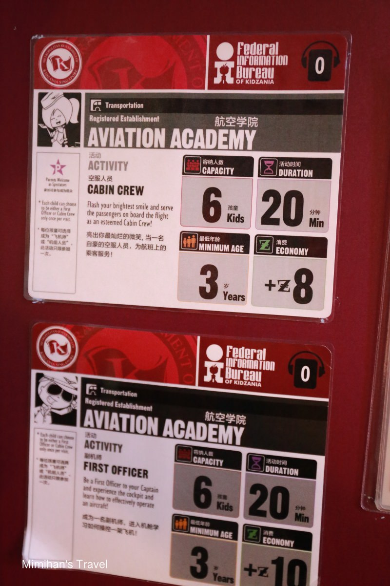 薪資表、體驗時間、年齡限制⋯等都會標示在每個體驗區的入口,還有中文,孩子自己玩不會有問題。