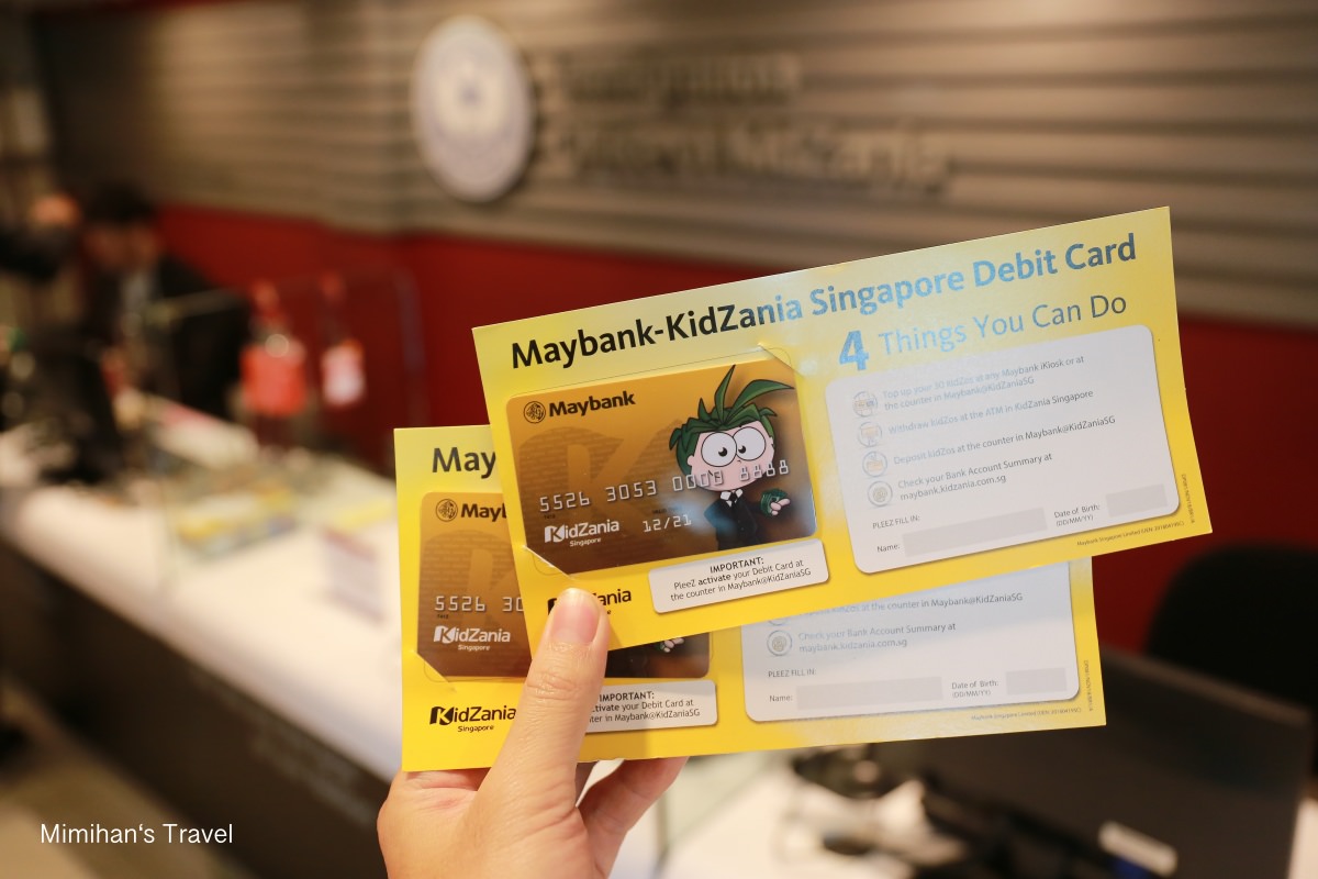 入場後小朋友就可以先到KidZania Singapore園區裡的Maybank虛擬銀行辦理薪轉卡,會獲得一張銀行卡&50元的啟動資金,就像玩大富翁一樣。記得叫他們要保管好卡片,打工所獲得的薪水都會存在裡面,也可以憑卡到園區商店換禮物唷 😆