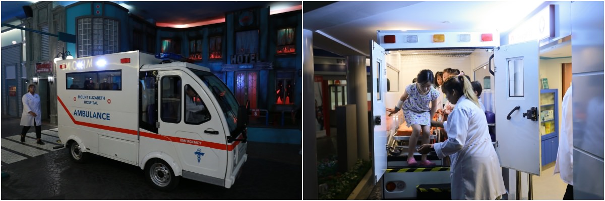 會先帶領小朋友學習簡單急救知識、練習急救包紮過程等,然後真的坐著小小救護車出發,到城市裡找需要救護的傷者,沿途還會歐伊歐伊,超好玩的!這也是小朋友很愛的一個職業體驗。