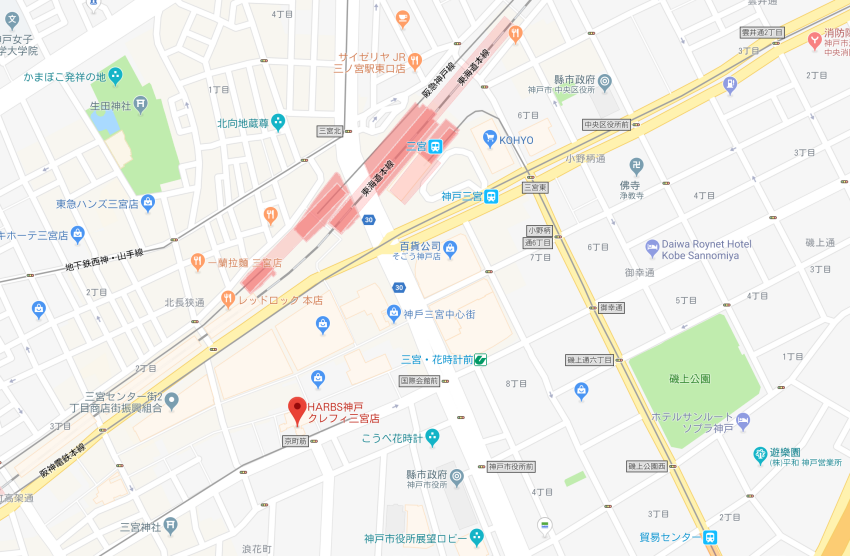 HARBS 神戸クレフ(三宮店)就在神戶的JR三宮站、地鐵三宮花時計前站附近,是一間小型百貨的一樓,在路邊就能看到。