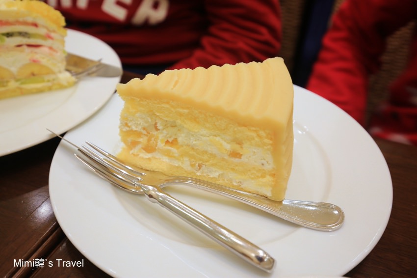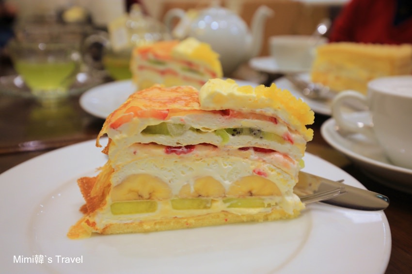 一層層夾著新鮮水果的千層是Harbs的招牌款,光看就讓人猛吞口水,裏頭有草莓、香蕉、奇異果、香瓜…水果選的又香又甜,混合細緻卻不膩口的奶油,整塊蛋糕非常好吃。