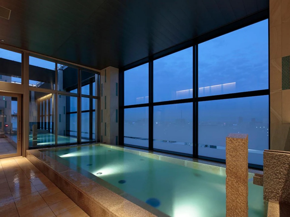 這間飯店最大的賣點就是頂樓的「天空大浴場(Sky Spa)」。在寸土寸金的市區,能在露天風呂一邊泡澡、一邊吹著晚風看星星(或看市區燈火),是極致的享受。CANDEO 系列一直主打「閃耀」的設計概念,大廳水晶燈璀璨,房間內的沙發區通常也比一般商旅大,設有一張寬敞的「小上がり(架高臥榻)」沙發,非常適合晚上買宵夜回來癱著吃。