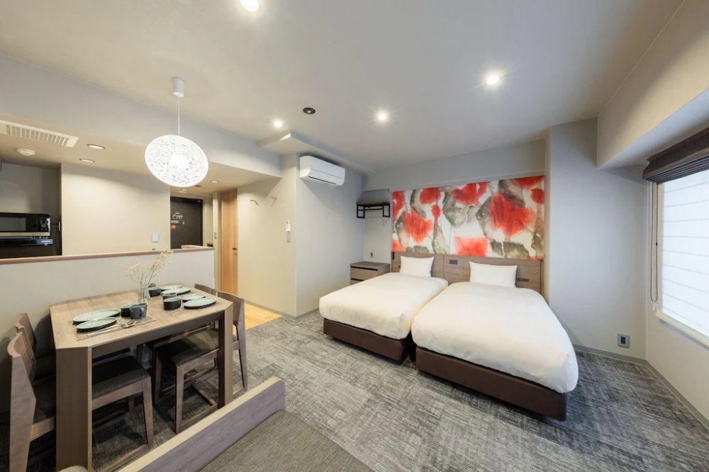 Minn 系列同樣是公寓式飯店的代表,與 MIMARU 類似,但這間的特色是它更靠近清水寺與五條地鐵站,將「交通便利」與「大空間」做了完美的結合。Minn Kiyomizu Gojo這裡的房型選擇超級多元,從雙人到六人都能滿足,是大家庭的首選。