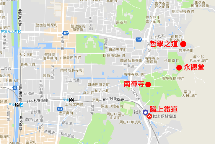 - 終點:哲學之道(體力好可以一路走到銀閣寺,體力不好走到永觀堂即可)