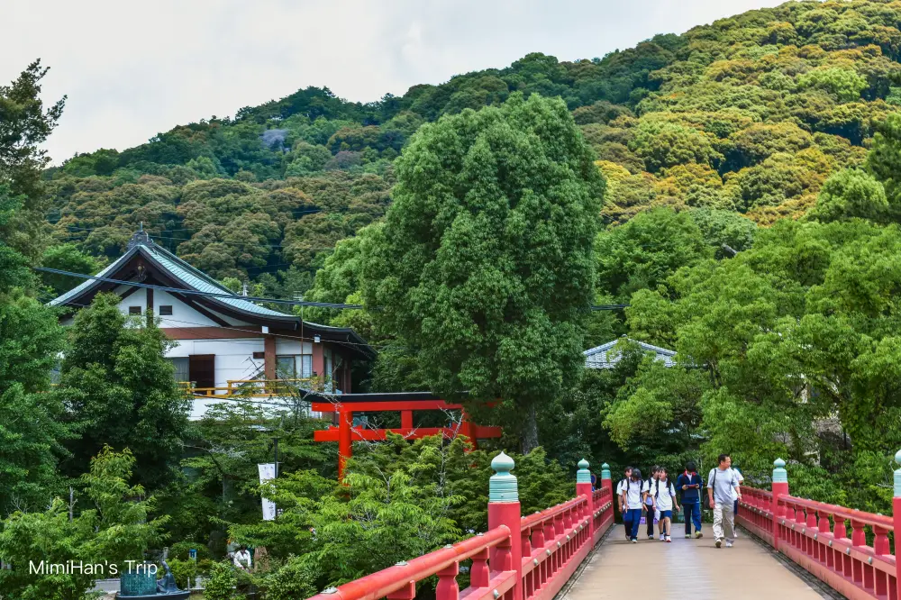 走過紅色的朝霧橋來到宇治川對岸,會先看到「宇治神社」,再往上走一點就是世界遺產「宇治上神社」。